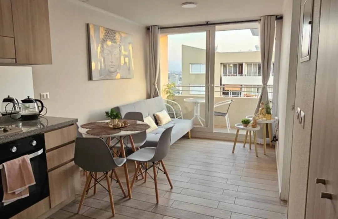 An equipped kitchenette is provided at Dpto Acogedor A Pasos Del Metro Apartment The nearest bus stop to the apartment is Lo Encalada / Guillermo Mann, which is 400 metres away.